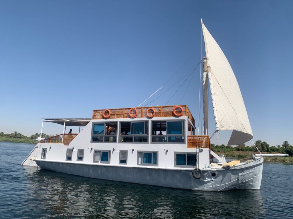 Discover Egypt at a slower, more soulful pace aboard our three Ankh Sailing Sandals, our Dahabiyas. With just 6 cabins, solar-powered comfort, and wind-guided navigation, Ankh offers an intimate journey between ancient temples and timeless river landscapes.